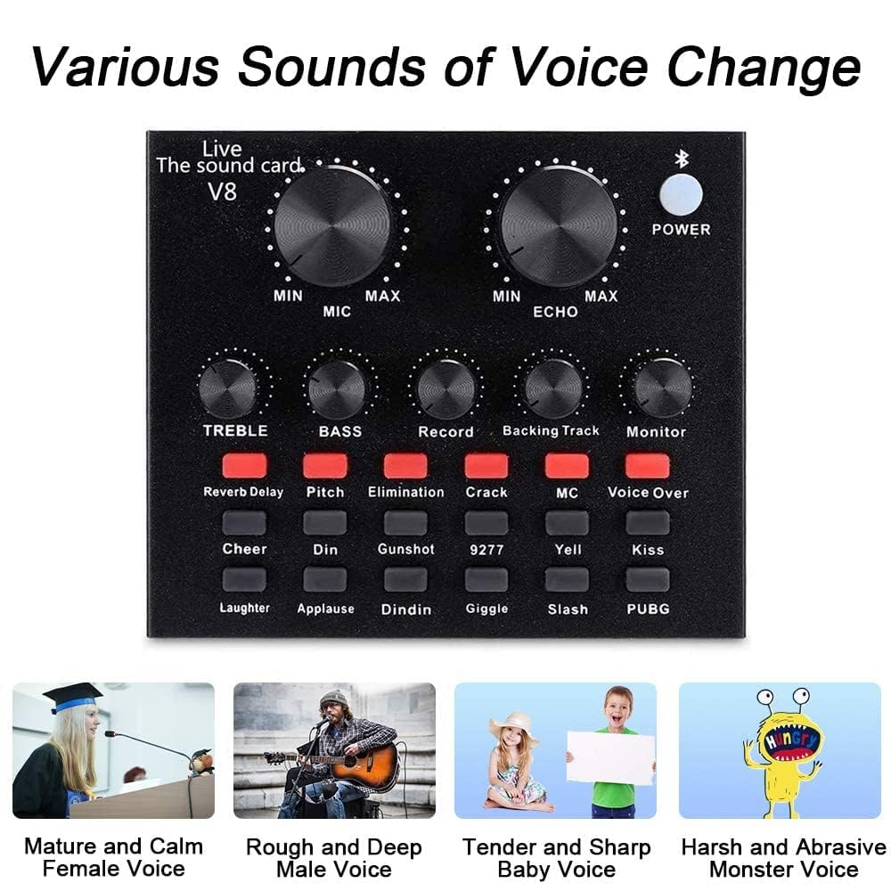 - [ Bluetooth Connectivity ]: Zhizuka V8 sound card is equipped with bluetooth that instantly receives wireless music streaming audio and works with all of your favourite devices. NOTE: The Bluetooth only support streaming of sound, does not support recording devices. For that you will need to connect the recording devices with recording cables.