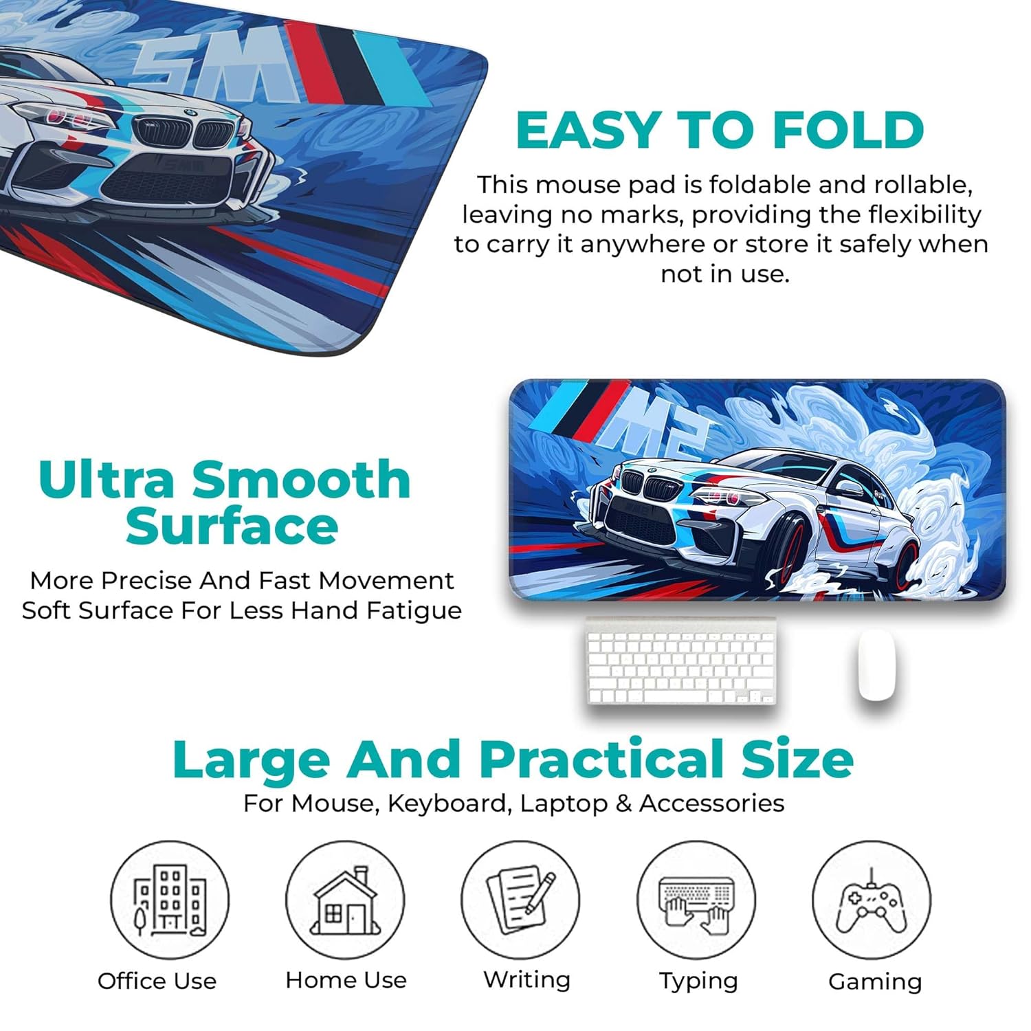 For professionals, a well-organized workspace can boost productivity. The BMW Gaming Mouse Pad provides a smooth, stable surface for precise mouse movements, making tasks like graphic design, video editing, or coding more efficient. The non-slip base ensures your setup stays in place, even during busy workdays.
