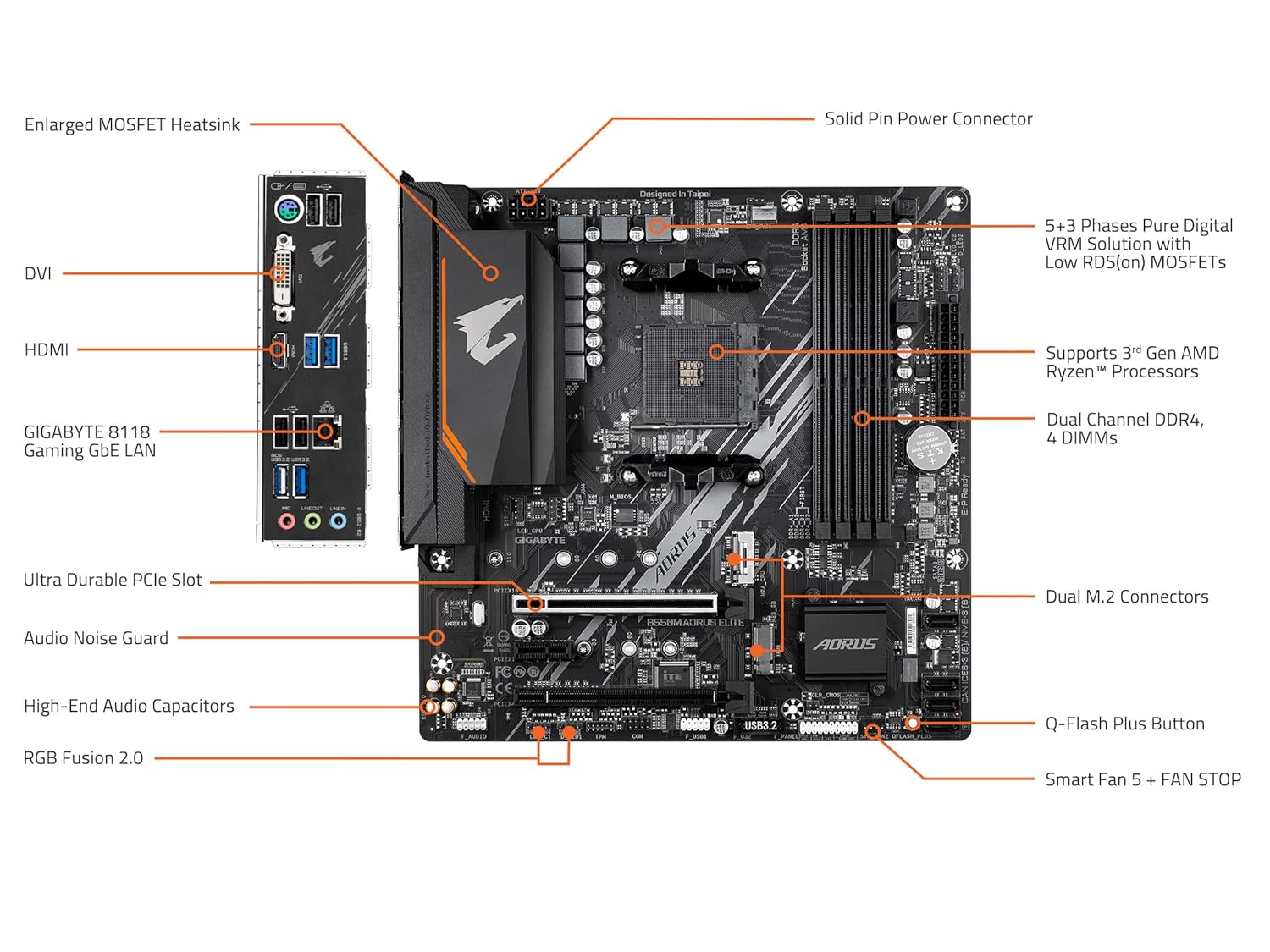 GIGABYTE B550M AORUS Elite (AM4/ AMD/ B550/ Micro-ATX/ DDR4/ Dual M.2/ PCIe 4.0/ Realtek GbE LAN/Gaming Motherboard)