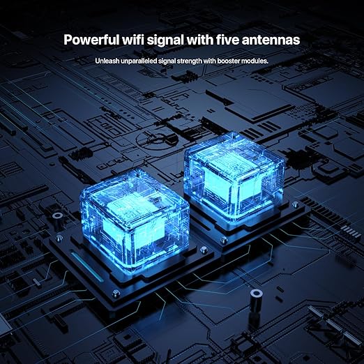 • Four external antennas with high power amplifiers for entire-home coverage and eliminating your WiFi dead zones