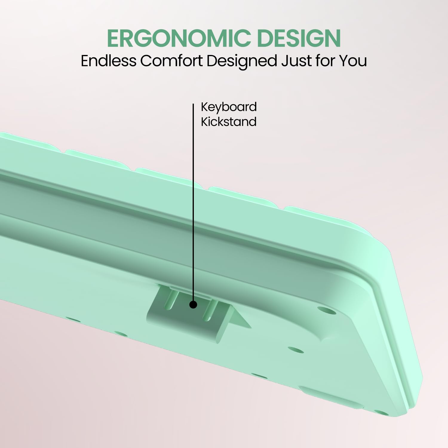 Slightly Angled Layout: The keyboard is designed with a gentle tilt to align with the natural angle of your wrists, reducing the risk of repetitive strain injuries (RSI).